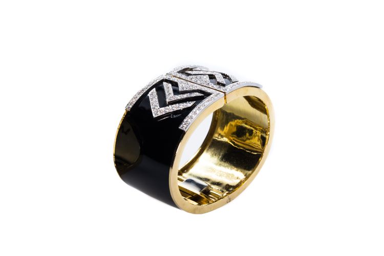 18 Karat Yellow Gold and Platinum, Enamel and Diamond Cuff Bracelet by David Webb