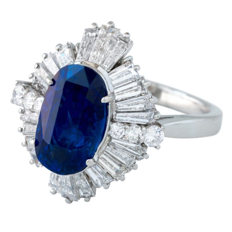 No Heat Ceylon Sapphire and Diamond Ring, Platinum