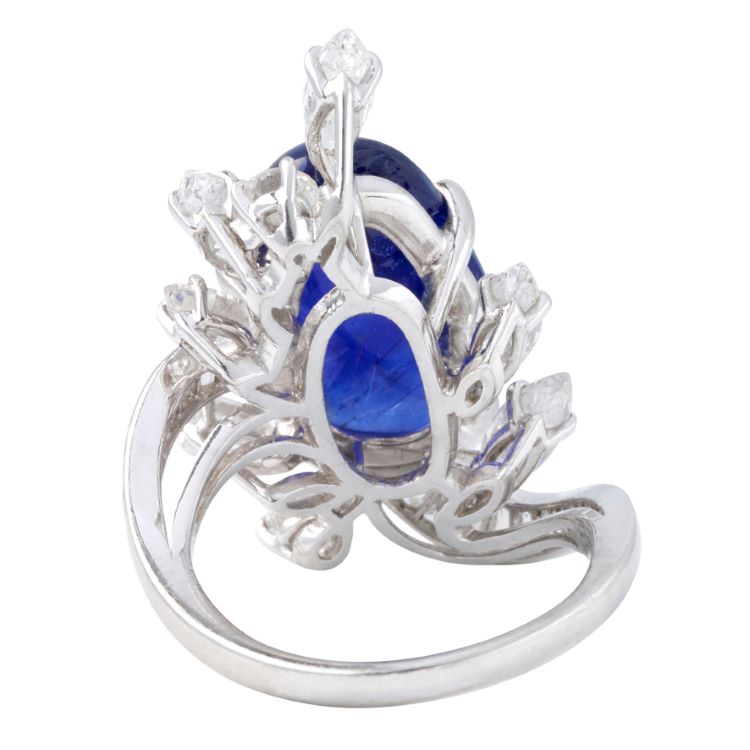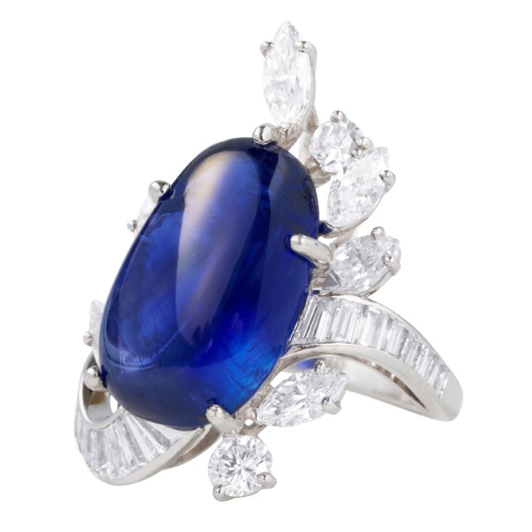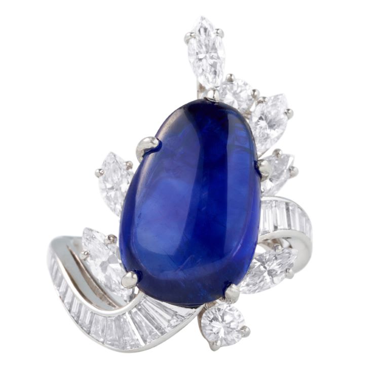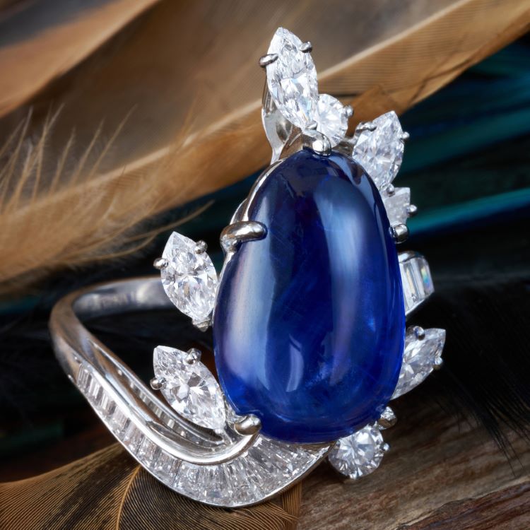 -fancy cabochon cut sapphire weighing 12.66 carats accompanied by an AGL report stating that the origin is Burma with no evidence of heat