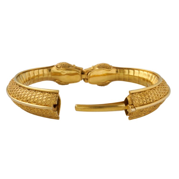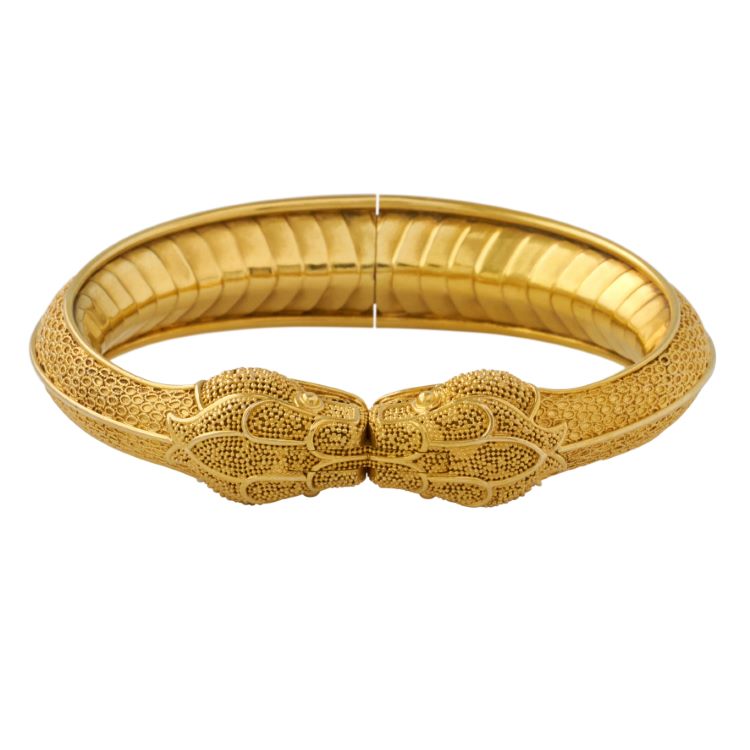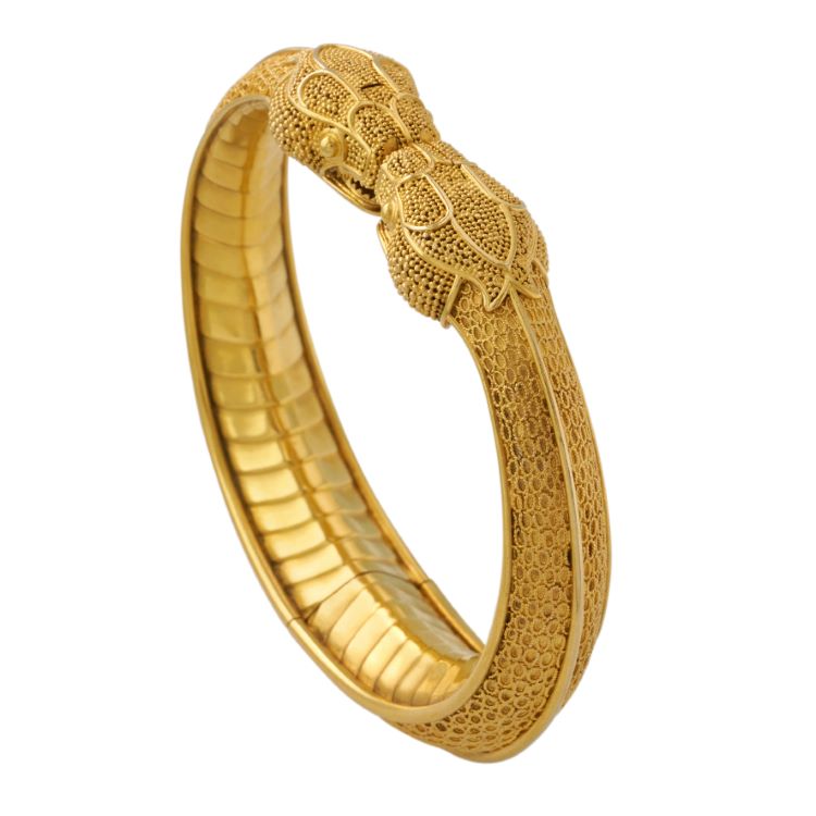 Vintage Serpent Bangle, 20 Karat Yellow Gold -extensive detail work -6 1/2" inside dimension, tapers 3/4" to 1/2" in width, gross weight 59.5 grams