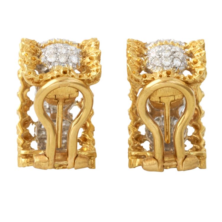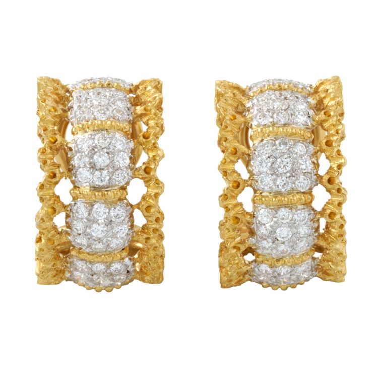 Buccellati Diamond Earrings, 18 Karat White and Yellow Gold