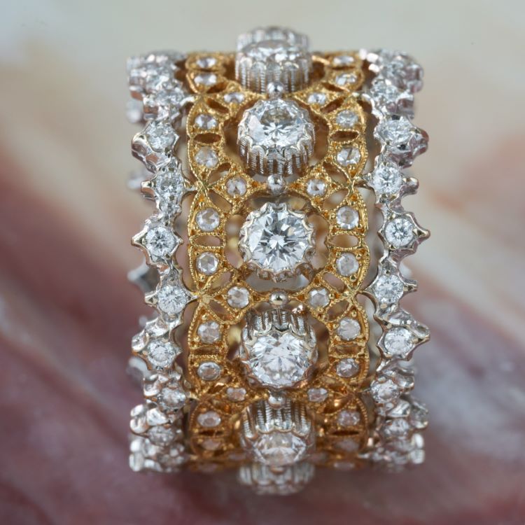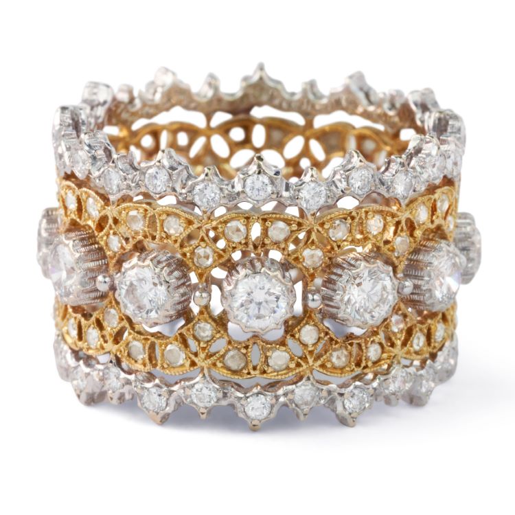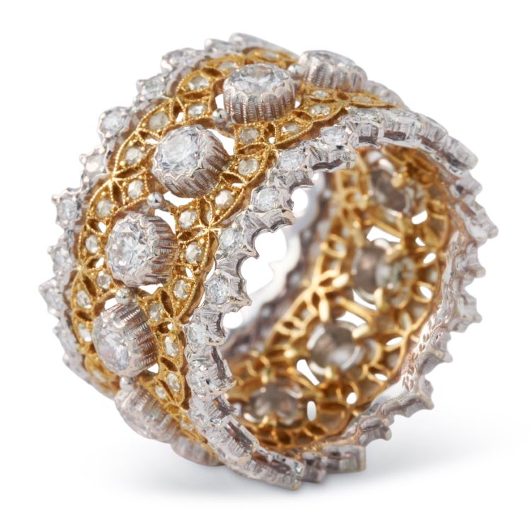 Buccellati Handmade Diamond Band Ring, 18 Karat Yellow and White Gold