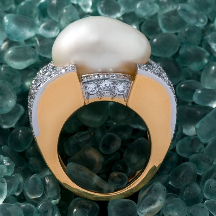 David Webb baroque pearl and diamond ring with 4.00 carats of diamonds, finger size 6, marked ©Webb® PLAT 18k -center baroque pearl approximately 18mm x 13mm -78 round diamonds approximately 4.00 carats -finger size 6, gross weight 28.0 grams