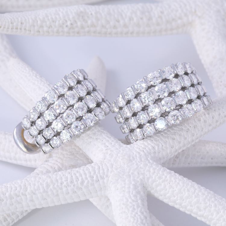 Gemlock platinum diamond earrings -80 round diamonds approximately 8.00 carats -1" x 5/8", gross weight 30.5 grams, marked © plat