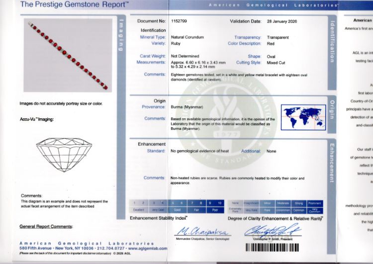 -18 oval rubies approximately 16.50 carats accompanied by an AGL report stating that ALL the rubies are Burma origin with no evidence of heat