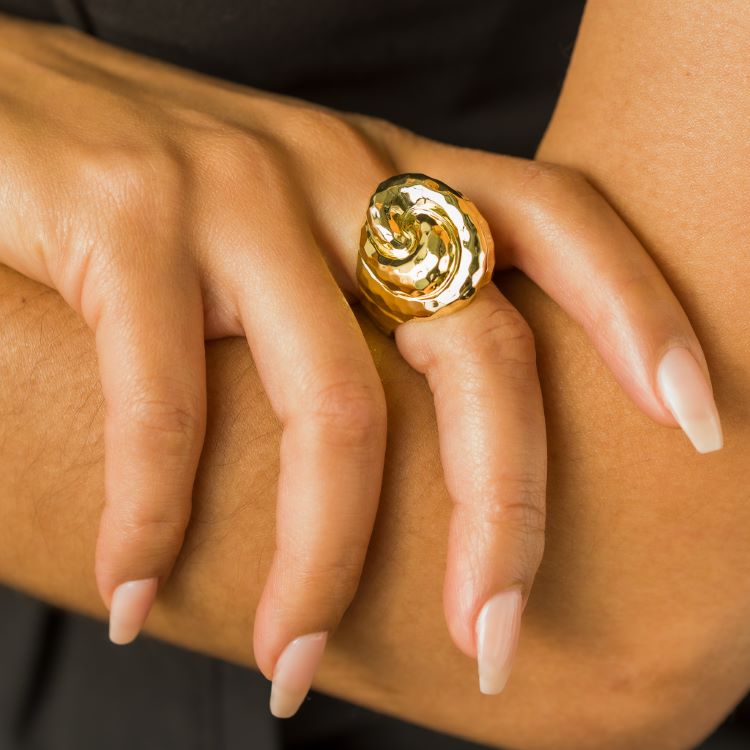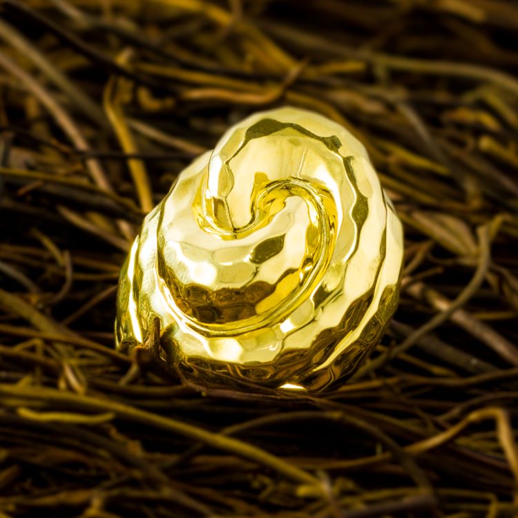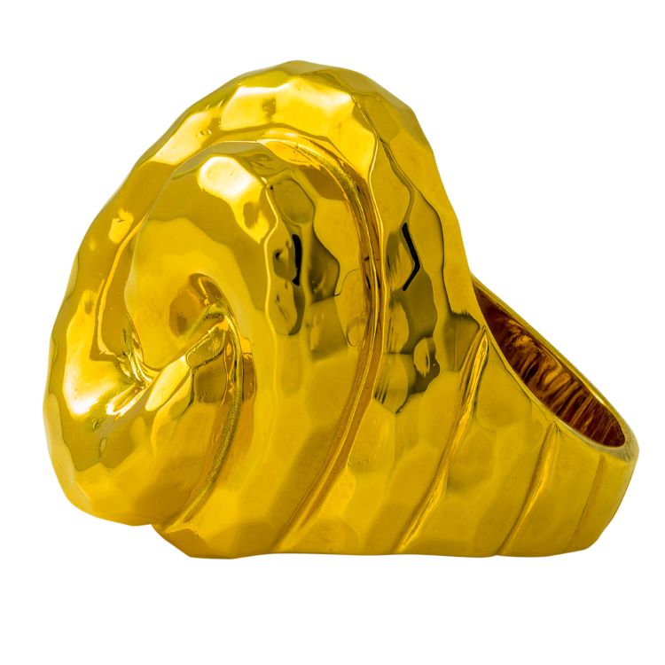 Classic vintage Henry Dunay ring in 18 karat yellow gold -marked Dunay 18K© 750 with makers mark -size 8, measuring 1 1/8 by 3/4 inches, gross weight 20.0 grams