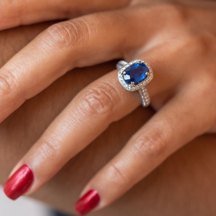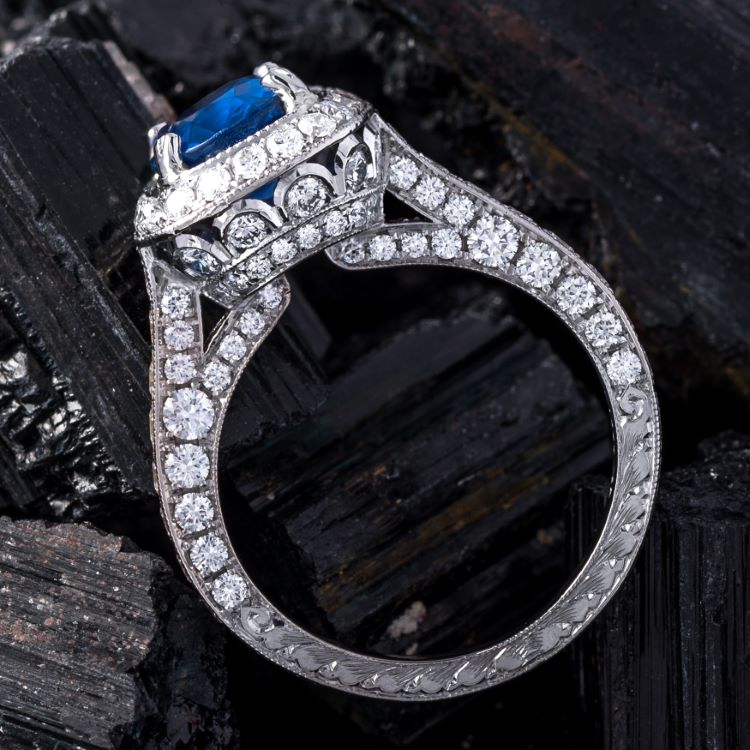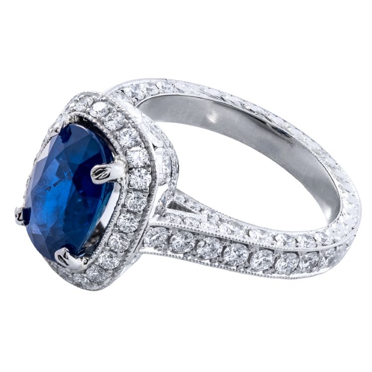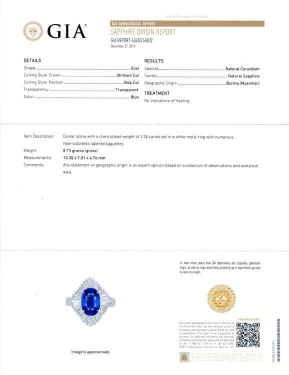 -oval cut sapphire weighing 3.28 carats with GIA gem report stating Burma origin and no evidence of heat (pictured in different setting)