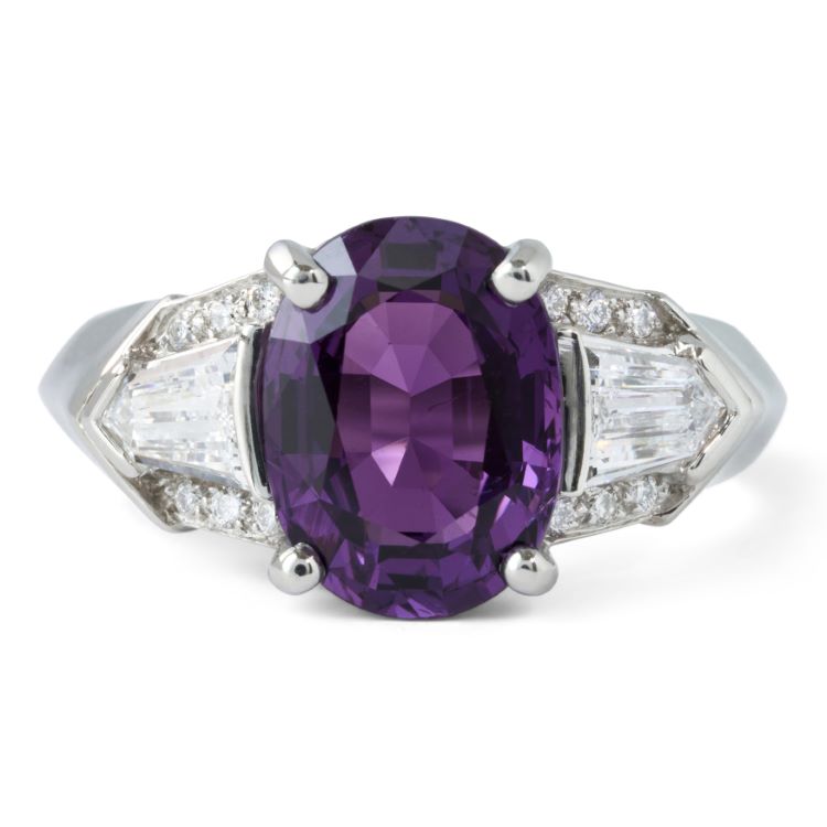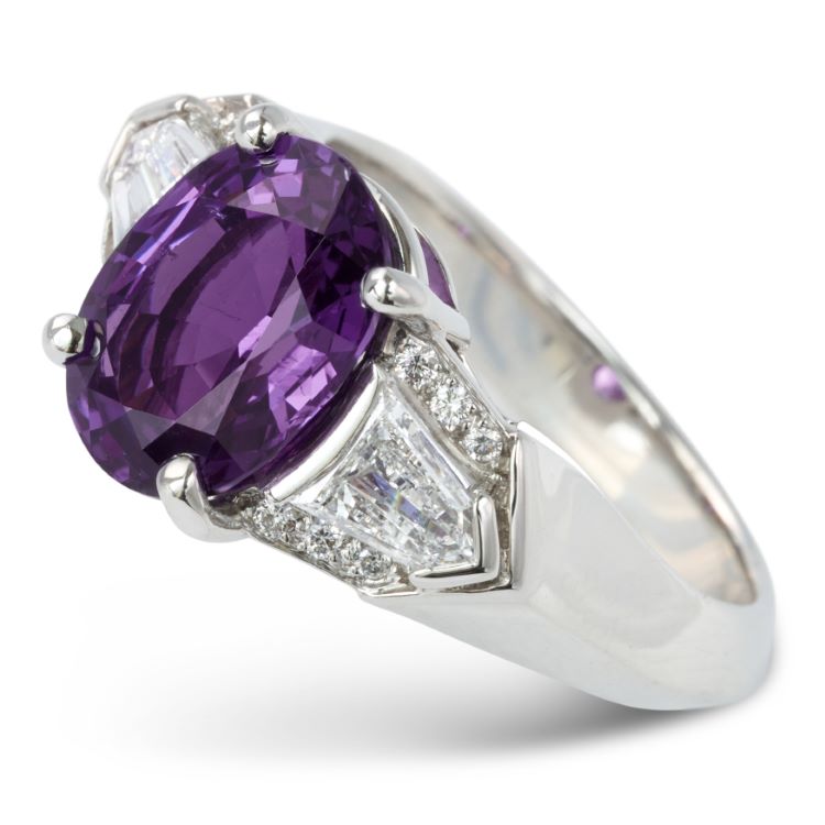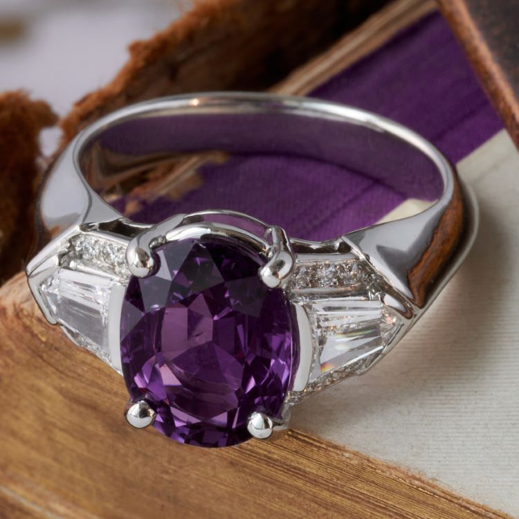 Rare No Heat Purple Sapphire from Montana set in a Platinum and Diamond Ring