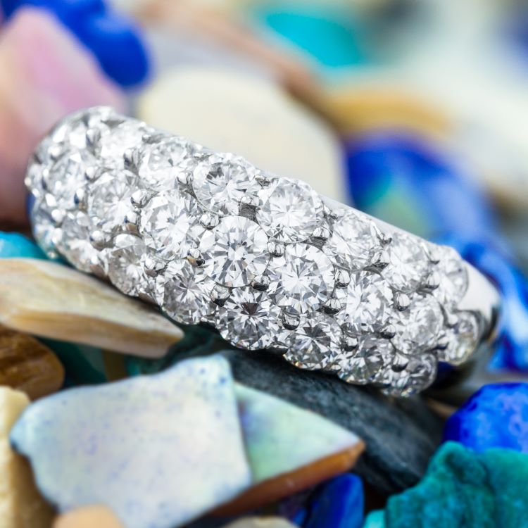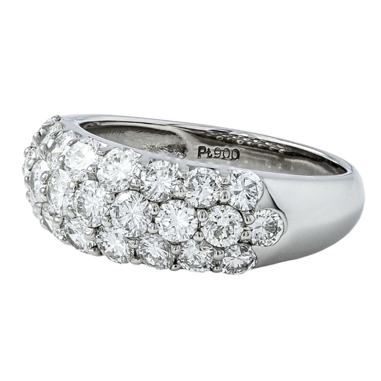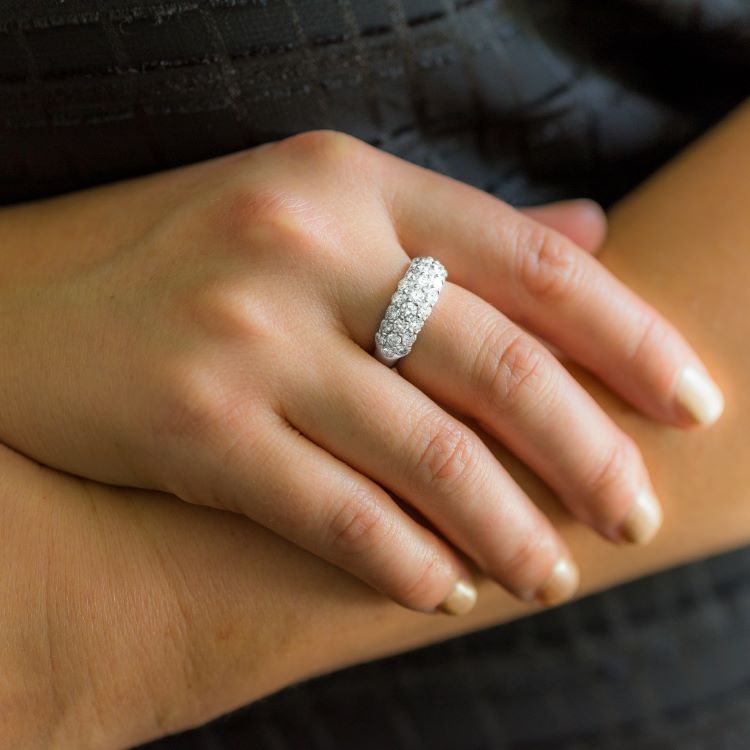 Classic diamond dome ring with 25 round pavé set diamonds weighing 2.0 carats, platinum diamond estate ring.