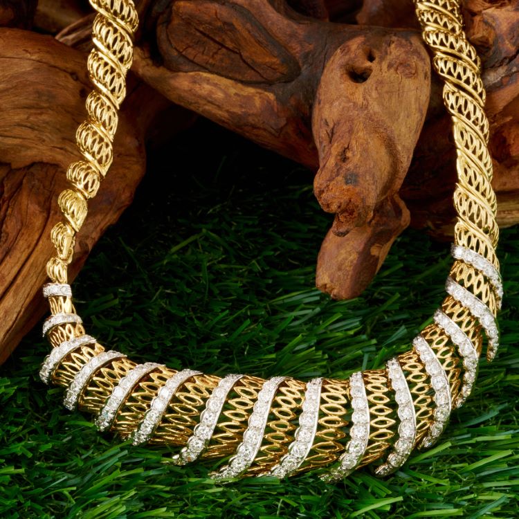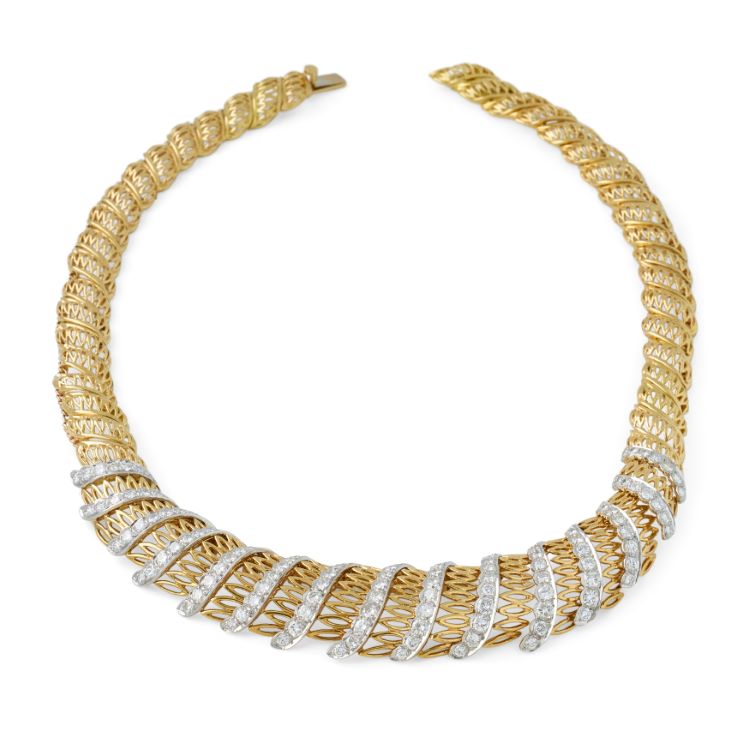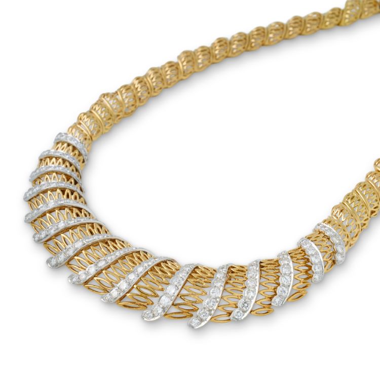 Sterlé Yellow Gold and Platinum Diamond Necklace, France