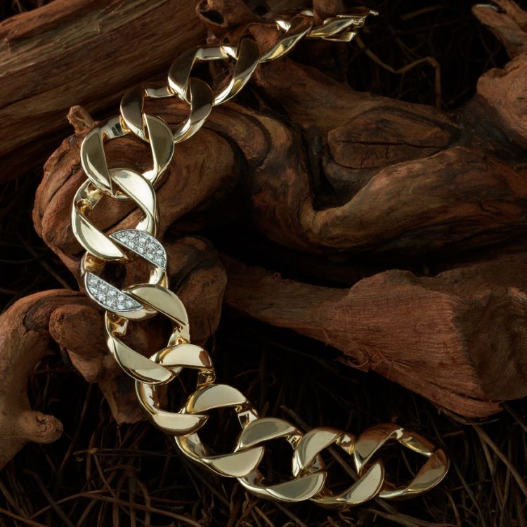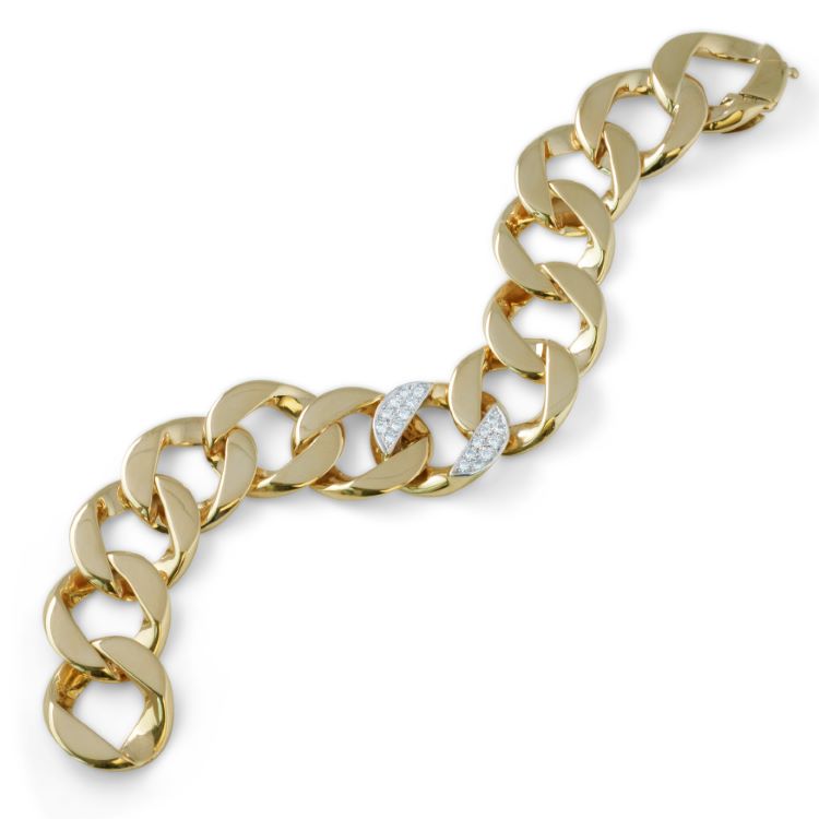 Tiffany & Co Solid Curb Link Diamond Bracelet, 18 Karat Yellow Gold
