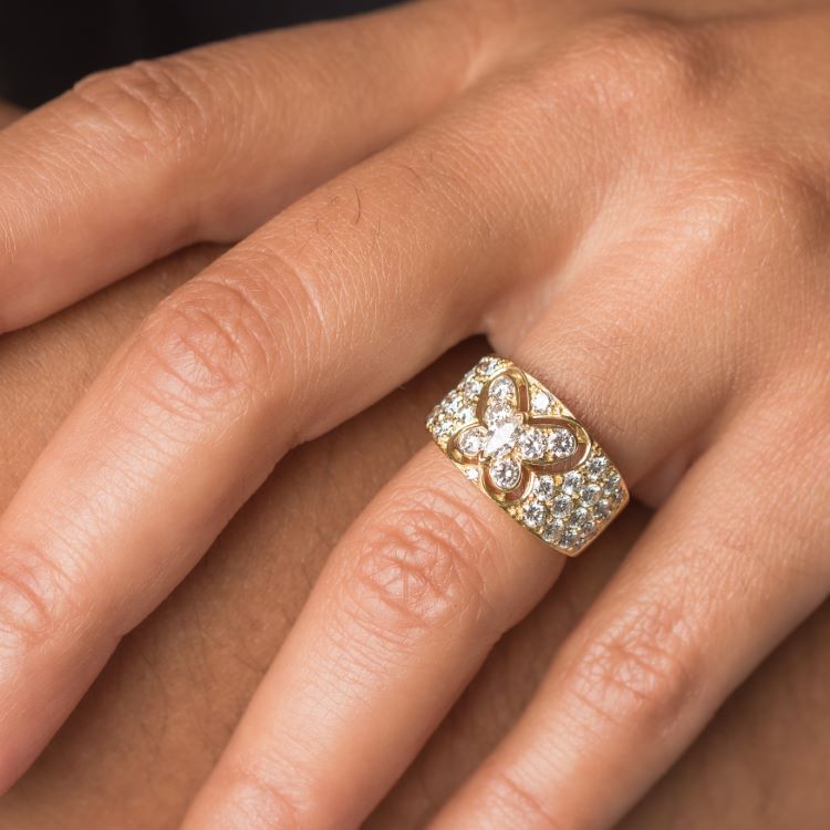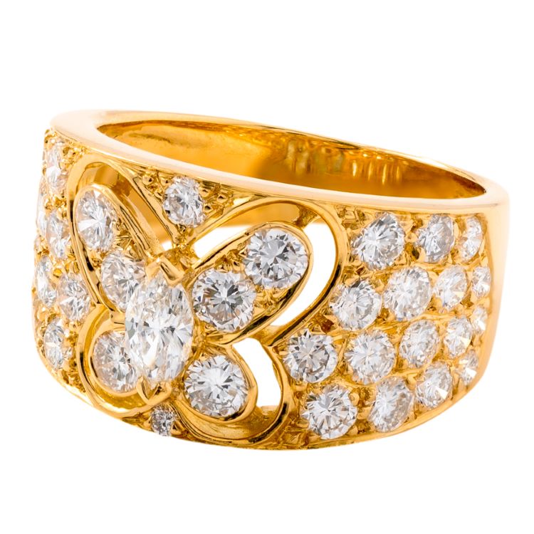 Lovely Van Cleef & Arpels diamond butterfly ring, 2 carats of diamonds, 18 karat yellow gold, whimsical and fun